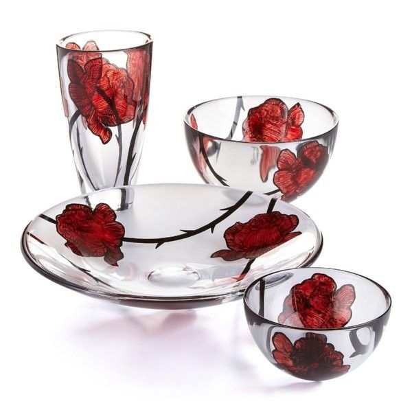 Deze glazen Kosta Boda platte schaal Tattoo doet zijn naam eer aan. De rozen lijken als het ware in het glas getatoeerd te zijn. Ontwerp van Ludvig Loefgren in 2010.