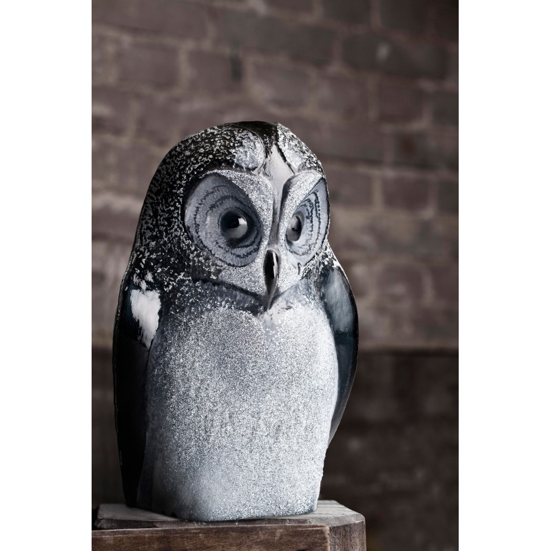 Dit antraciet/ wit kristal glazen MALERAS SAFARI sculptuur van een Uil is ontworpen door Mats Jonasson.