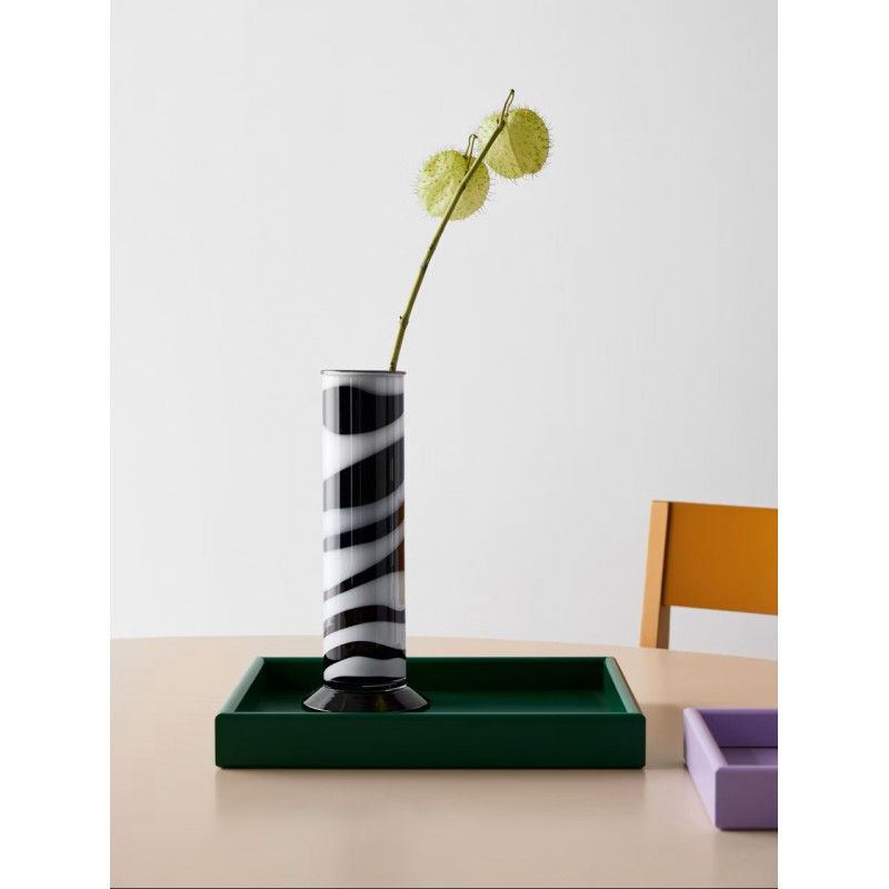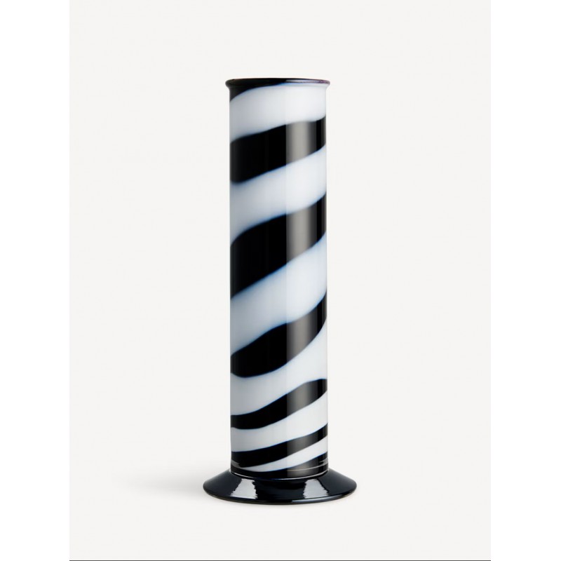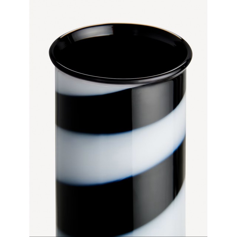 Deze wit/ zwarte KOSTA BODA vaas LAB CYLINDER is ontworpen door Simon Klenell & Matti Klenell in 2025. Geïnspireerd op het traditionele laboratorium glas.