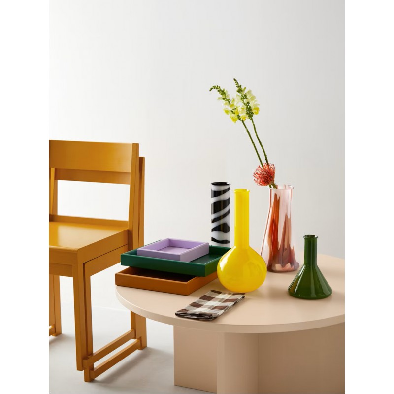 Deze wit/ rood/ roze KOSTA BODA vaas LAB ERLENMEYER is ontworpen door Simon Klenell & Matti Klenell in 2025. Geïnspireerd op het traditionele laboratorium glas. Een vaas of een glassculptuur ?