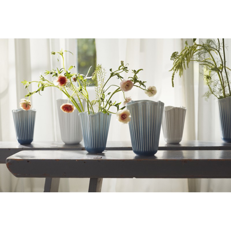 Deze blauw keramieken KAHLER vaas HAMMERSHOI UNFOLD is ontworpen door Hans-Christian Bauer in 2026. Mooie elegante vaas.