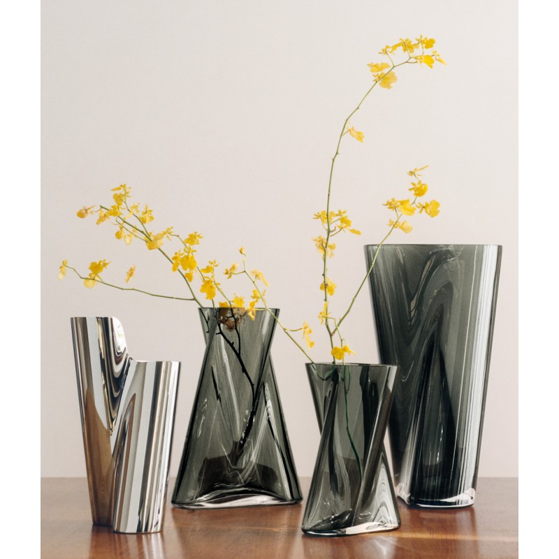 Deze RVS GEORG JENSEN vaas LITUUS S is ontworpen door Anne Boysen in 2026. Uniek door zijn diagonale vormen.