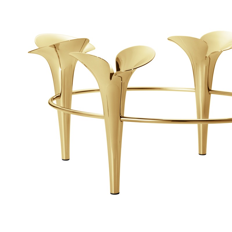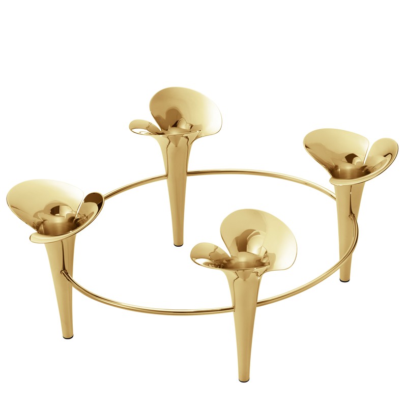 Deze goudkleurige GEORG JENSEN BLOOM Advent kandelaar is geschikt voor 4 kaarsen en ontworpen door Helle Damkjaer.