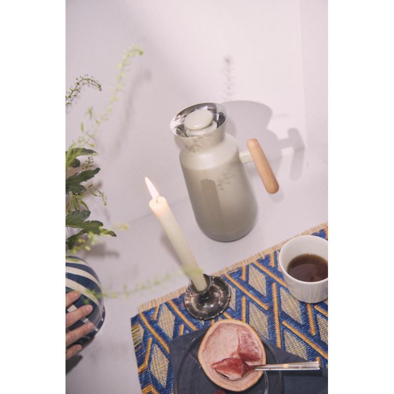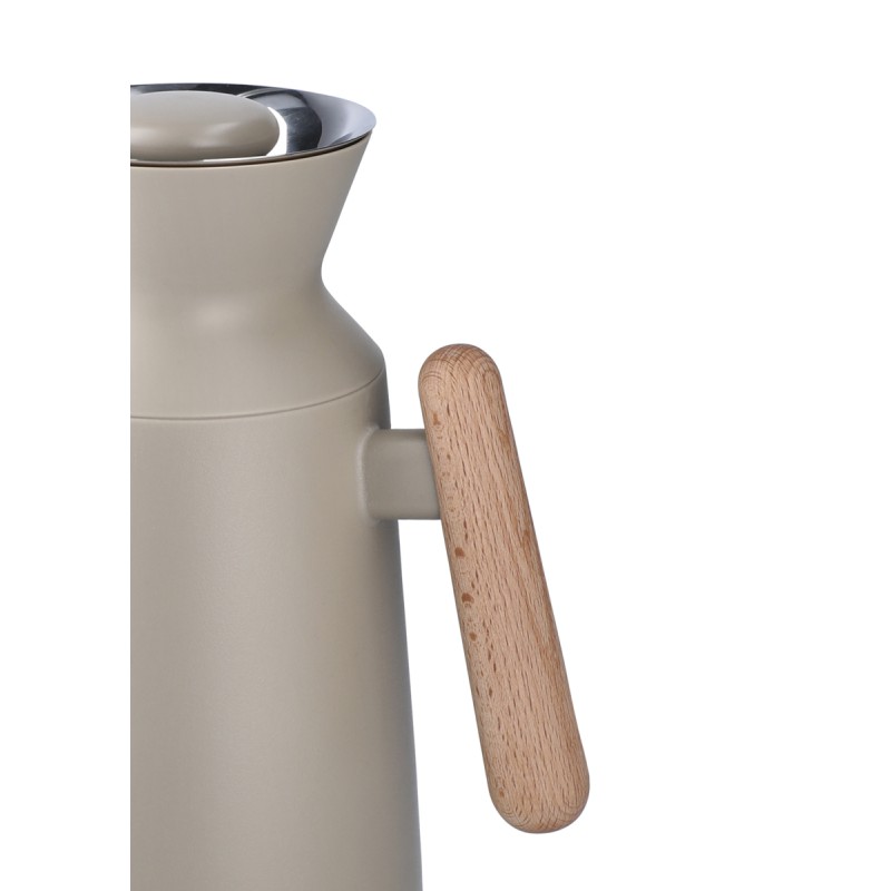 Deze zandkleurige ROSENDAHL thermoskan DAY BREAK is ontworpen in 2026 door JASPER VOLLMER. Een mooi Scandinavisch accent door het met wax bewerkte houten handvat.